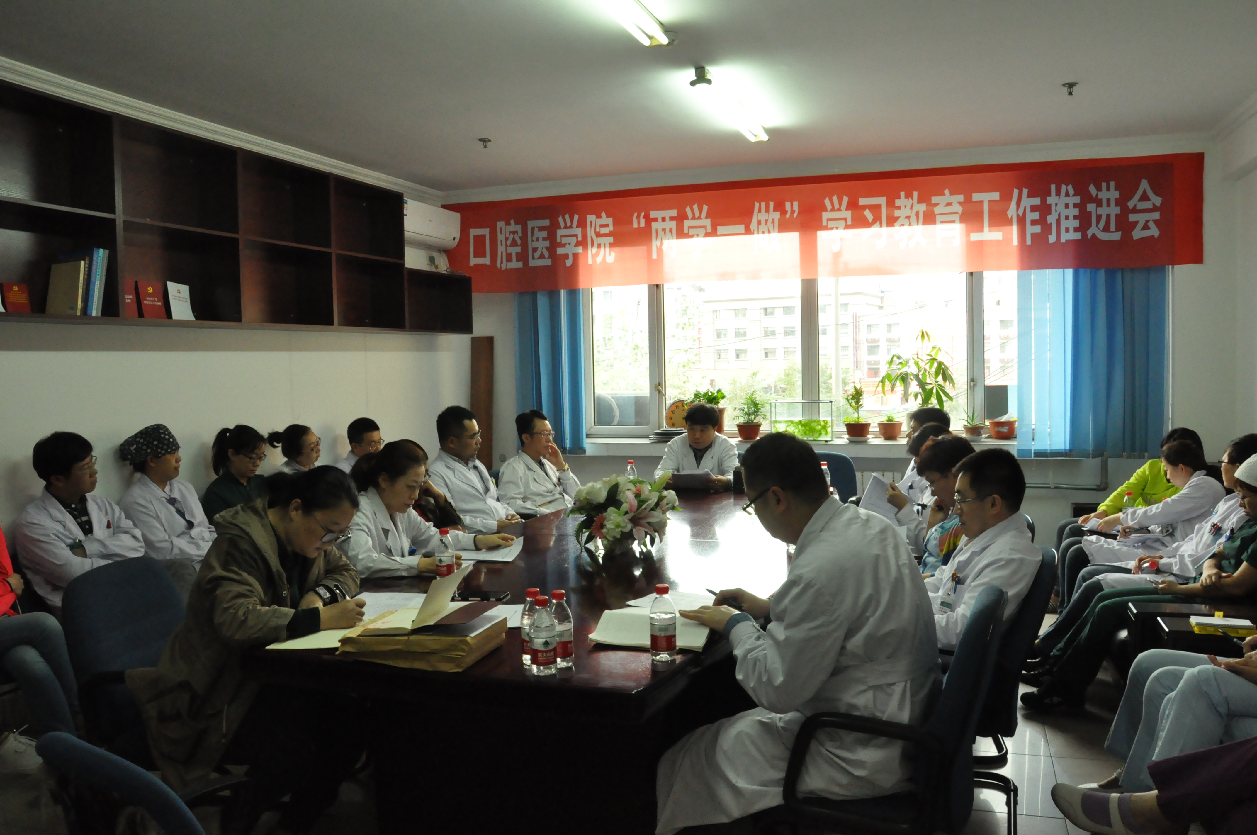 9月29日下午,口腔医学院“两学一做”学习教育工作推进会在副四层会议室召开。党委书记曹继晨出席并讲话,全院各党支部支委20余人参加了会议。 会上,牙体牙髓支部、儿童口腔支部、口外一支部、口外二支部、口腔修复支部、口腔正畸支部等九个支部对前一阶段“两学一做”学习教育工作的做法和体会进行了交流。牙体支部将党支部活动与业务学习结合,增强了学习效果实效;儿牙支部组织网上答题,活化学习方式;口外一支部建立微信群,将个人自学和集体学习有机结合;修复支部以劳动纪律为切入点,加强党员带头模范作用,严肃严格医德医风。 曹继晨书记充分肯定了各支部取得的成绩,重点传达了学校9月26日召开的“两学一做”学习教育工作推进会的主要精神,传达了学校党委书记王永清的重要讲话和杨宝峰校长的总结讲话精神。他指出,要紧跟学校步伐,扎实推进“两学一做”学习教育。学院年初即对党支部设置进行了优化调整,自4月底学院党委开展“两学一做”学习教育以来,制定和下发了文件以及年度学习计划表,为全院91名党员发放了最新版党章,为所有党支部配发了“两学一做”学习教育系列教材,设计发放了“党章党纪党规知识测评试卷”,并在原有“百米文化长廊”基础上,增设“两学一做”学习专栏;组织参观了哈尔滨党史馆,重温入党誓词;举办了2016年宣传工作会议暨通讯员学习讲座;更为所有党员发放“两学一做”学习教育笔记本,要求将学习过程都要体现在学习笔记中,由党委书记亲自审核;设立了党员学习园地,将原有会议室改建为小型图书馆为党员自学开放,作为支部活动专用场地;完成了学院网络建设,线上线下协同发展。各支部要紧跟学校、学院步伐,进一步创新活动载体,活化学习方式,不断推进“两学一做”学习教育工作。对下一步如何深入开展好“两学一做”学习教育,他强调,一要高度重视,党支部书记要率先垂范,要带头参加学习,带头查找问题,带头改进落实;同时,要切实担负起领导责任,组织安排各项学习教育,加强检查督促。二要扎实执行,按照学校“两学一做”学习教育推进表,按时组织好学习、讨论,边学习、边查问题、边整改;认真完成规定动作,创新组织自选动作。三要联系实际,查摆问题,探讨“如何做一名合格党员”,改进工作作风,关心群众,实实在在为师生解决问题。按照学校要求,把学习教育与促进工作、推动学院发展紧密结合,用实实在在的工作成绩检验“两学一做”学习教育效果。 |